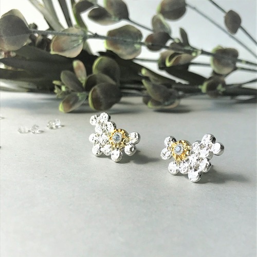小さな花のモチーフにk18コーティングを施し、小さな石を配置。